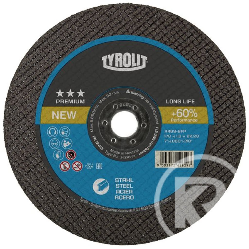 TYROLIT kapskiva LONGLIFE 178×1,6×22,23 rak A46S PREMIUM stål